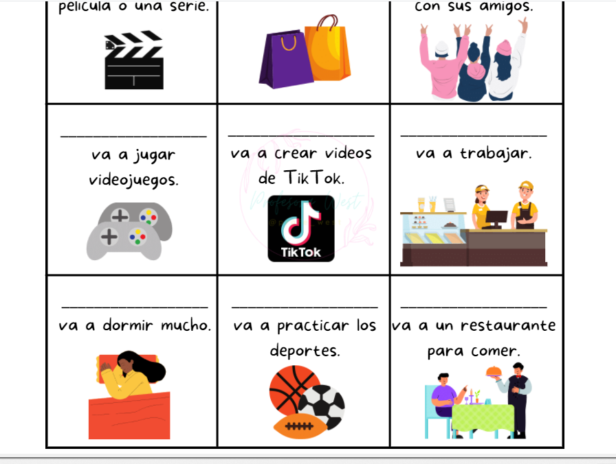 Looking for a low-prep assignment right before the weekend? Here is a fun, vibrant version of Find Someone Who! This product includes instructions for the teacher, a quick grammar review of "ir + a + infinitive", a Find Someone Who board, and a weekend plans writing sheet to further develop presentational writing skills.